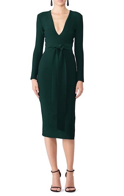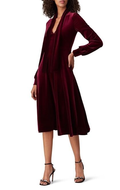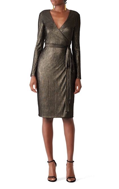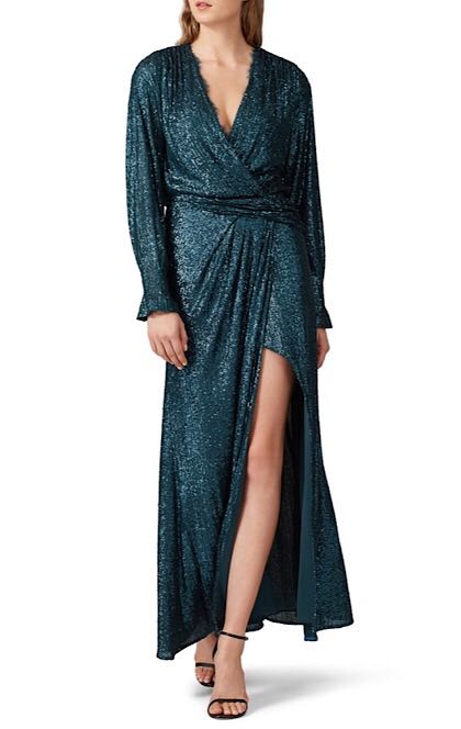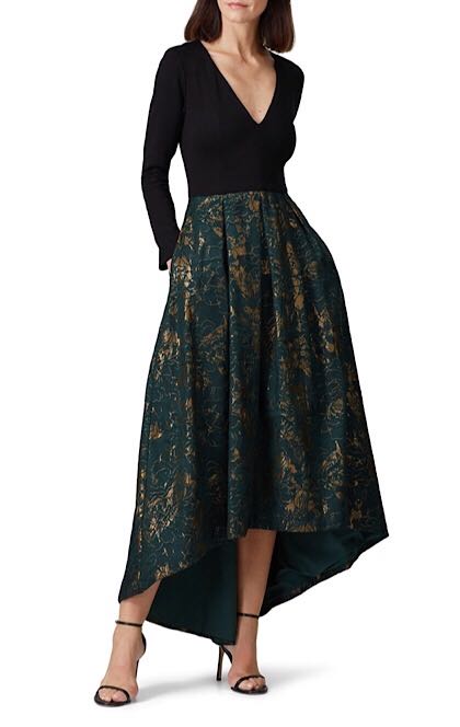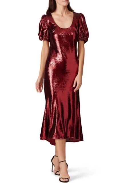 For Christmas Day, I’m taking full advantage of my membership to snag the Merlot Sequin Sheath by Badgley Mischka. This captivatingly sequined sheath has a crew neck, fitted bodice, and the most stunning plunging draped back, ever, which you can check out here. I’m competing with the Christmas tree for best dressed, and honestly, I’m feeling good about my chances.