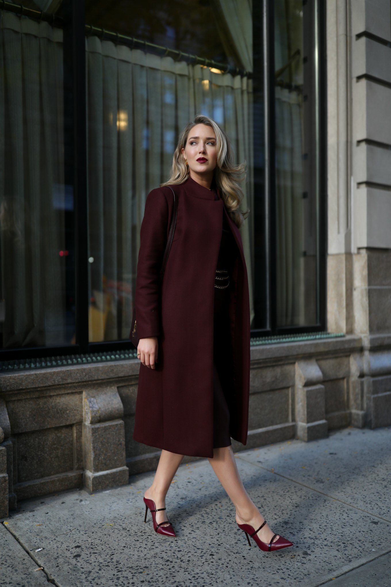 [shop_product num=”1″ image=”left”] [shop_product num=”2″ image=”left”] [shop_product num=”4″ image=”left”] [shop_product num=”5″ image=”left”]While the dress itself is a genius professional move, I’d be remiss if I didn’t devote words to this fabulous COAT. Also by Reiss, the longline wool coat is a closet staple all winter long. You should never have to make a choice between being warm and being professional, and this coat ensures you don’t have to. I’m also a huge fan of outerwear with a bit of color to it. Color helps prevent winter wardrobe boredom almost effortlessly, and this deep berry shade is incredibly wearable because it looks great with blacks, browns, blues—everything. When I’ve spoken about smart investment pieces in the past, this is what I’ve been talking about. Buy confidently, take good care of it, and you’ll spend years wearing and loving this coat.