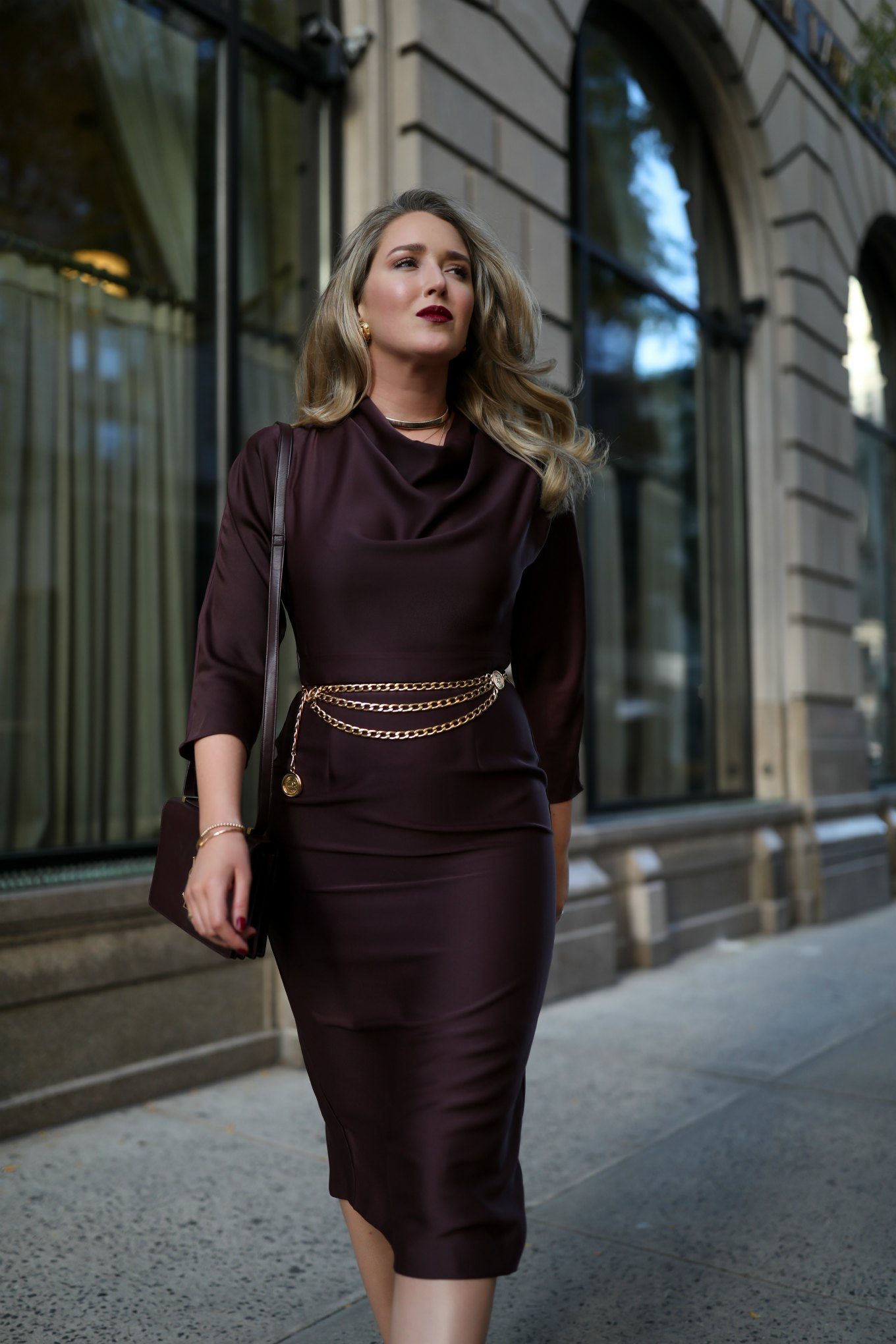 The dress is the Vienna Belted Midi Dress by Reiss in a deep berry shade I think we can all agree we need in our lives more often. The crepe dress has a cowl neckline and a smart D-ring belt to pull you in at the waist and give the dress a defined, but still flowing shape. Of course, I decided to go rogue and ditch the belt it comes with in lieu of my own, but just know, you’ve got options. It’s on sale for an absolute steal right now and I love this dress specifically for professional purposes. It’s got style and polish in equal measure, meaning there would rarely be a business meeting where it wouldn’t work.