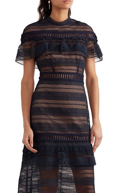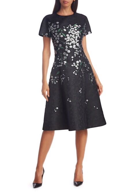 This MICHAEL Michael Kors Floral Lace Ruffle Dress has a smart jewel neck, slightly poofy sleeves (and I love that those mellow out into sleek, fitted arms), a lace overlay, and a two-tiered ruffle hem that is begging for a twirl, but I will restrain myself (or will I?). It’s so effortlessly pretty, it’s really hard to find a flaw.