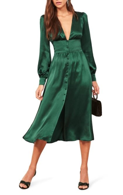 At this point I think we all understand how I feel about a good winter floral against a dark background, but this dress you guys! It’s so amazing I feel like it would have been invited to the wedding on its own without me. It will have the salmon for dinner and it dances a lovely waltz.
