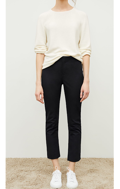On the bottom, you’ll find me in the essential Hockley Jean. It takes the comfort of your favorite lived-in denim and makes it workday-polished. The fit and feel of this straight-leg pant is nothing short of MAGNIFICENT. It’s described as “better than denim” for a reason. The machine-washable fabric has just the right amount of stretch that ensures baggy knees are never in play. The hem has hidden snaps so you can shorten or lengthen with ease.