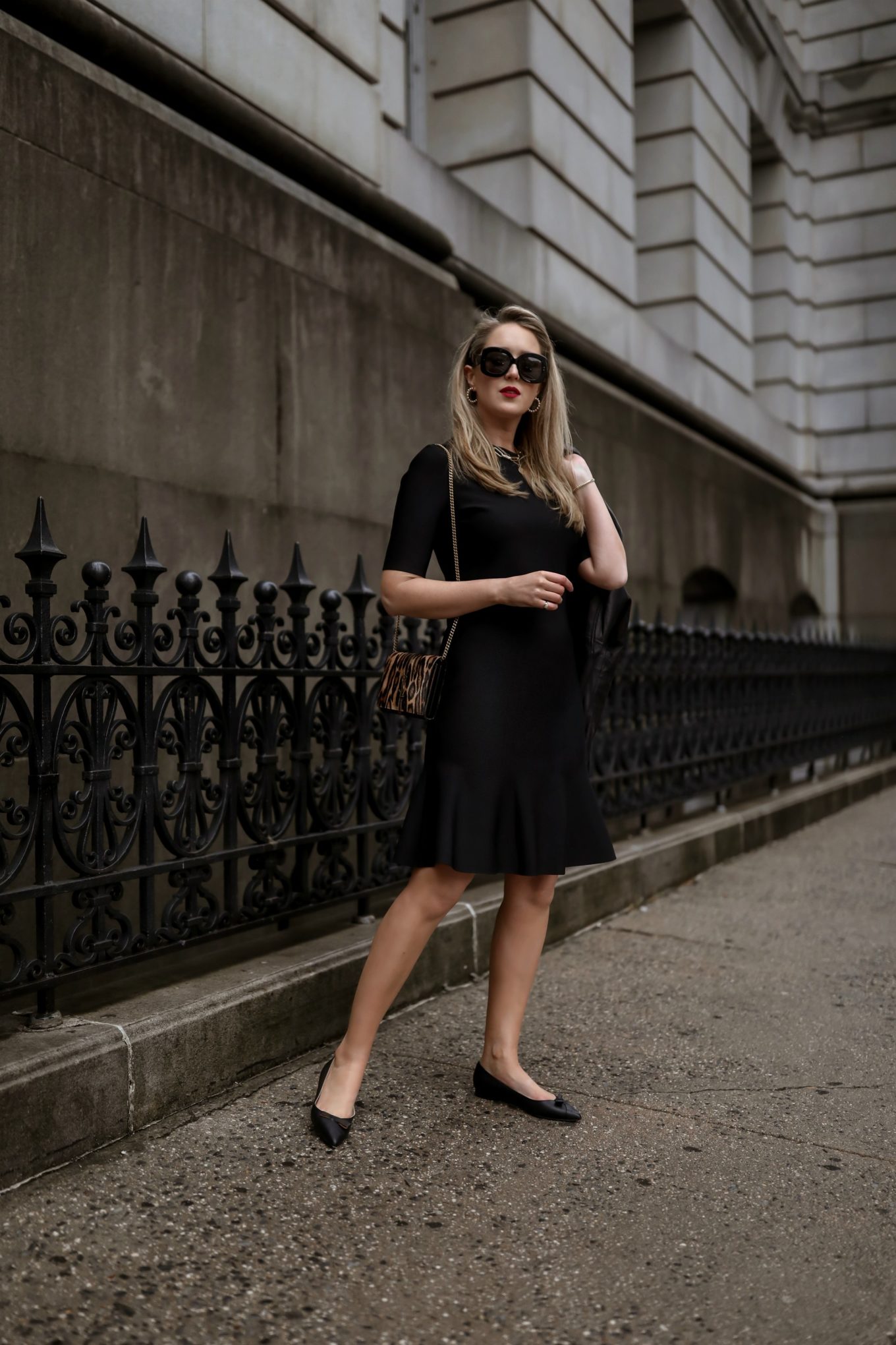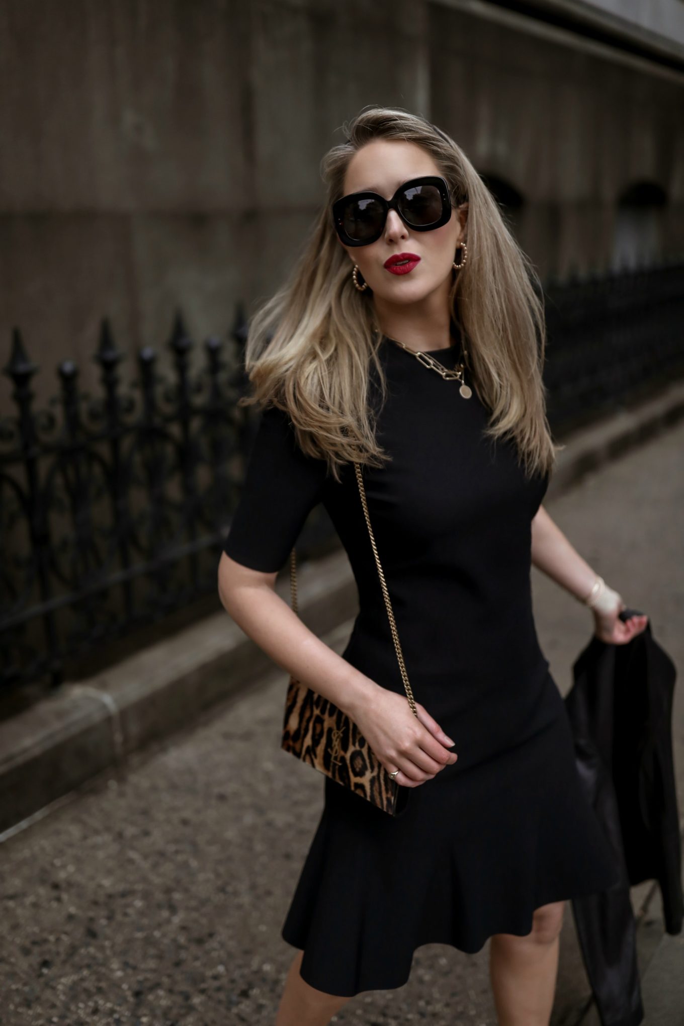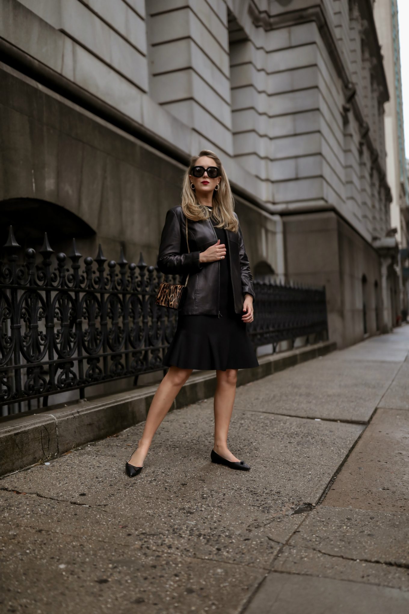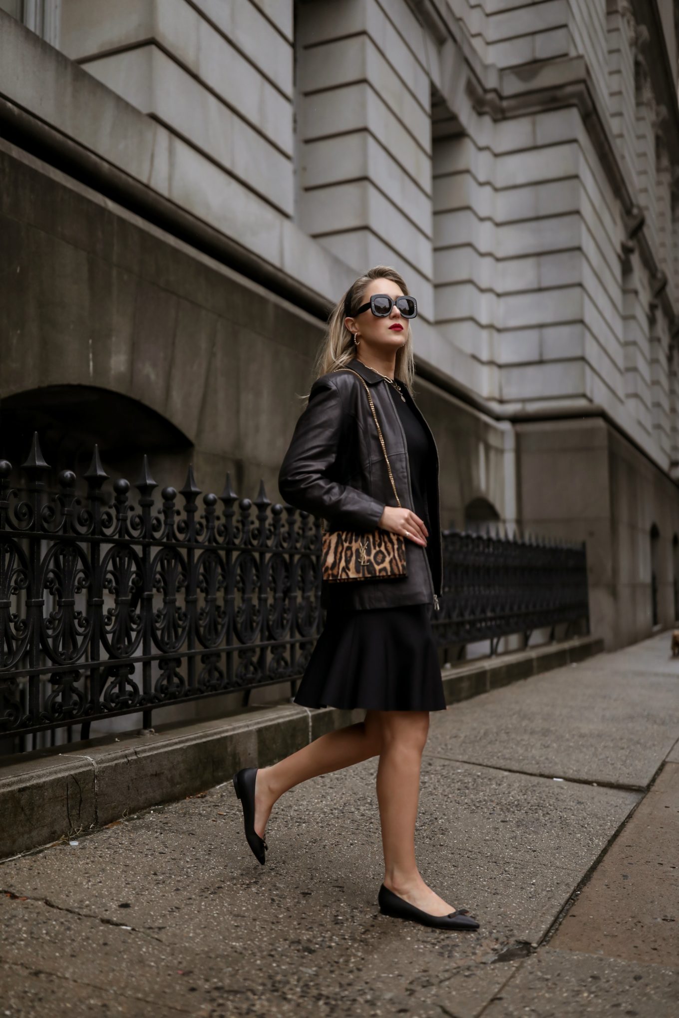 Here, I’ve styled the dress with Sarah Flint’s Natalie Flats in black, though try and imagine a shoe or heel that wouldn’t work with this dress. (It actually also looks amazing with a jean jacket and sneakers!) Today, I’ve enlisted the help of my favorite leather longline jacket, and you should really feel free to play around with leather jacket + heels looks with this dress for nights out. I felt it was time for a good headband moment, and my bag is a leopard YSL option that’s also helping me amp up the versatility of my wardrobe this year.