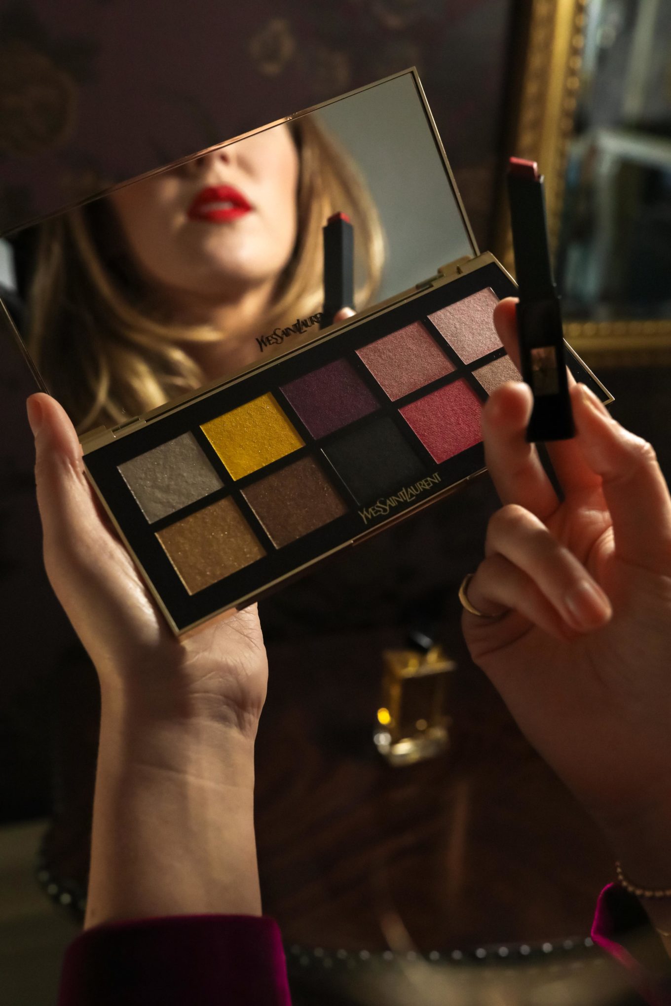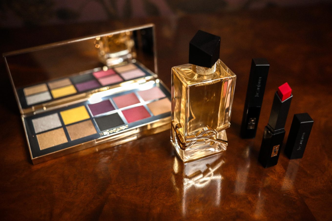 I’m also completely enamored with YSL Beauty’s Couture Clutch Eyeshadow Palette, a playful but luxe collection of ten festive shades, all encased in a “clutch” inspired by a YSL bag. I mean, it’s tempting to skip the party altogether and just spend an evening trying out each one. A quick spritz of a classic floral scent—their popular “Libre” perfume—and I’m ready for anything.