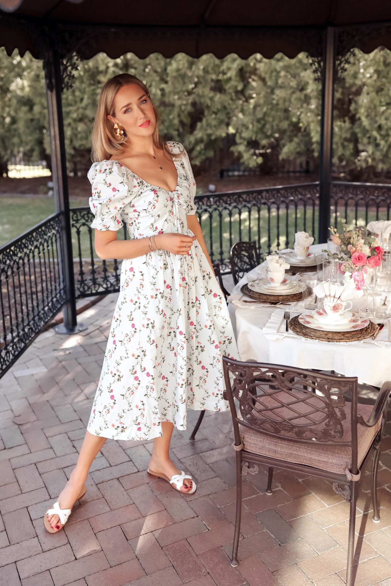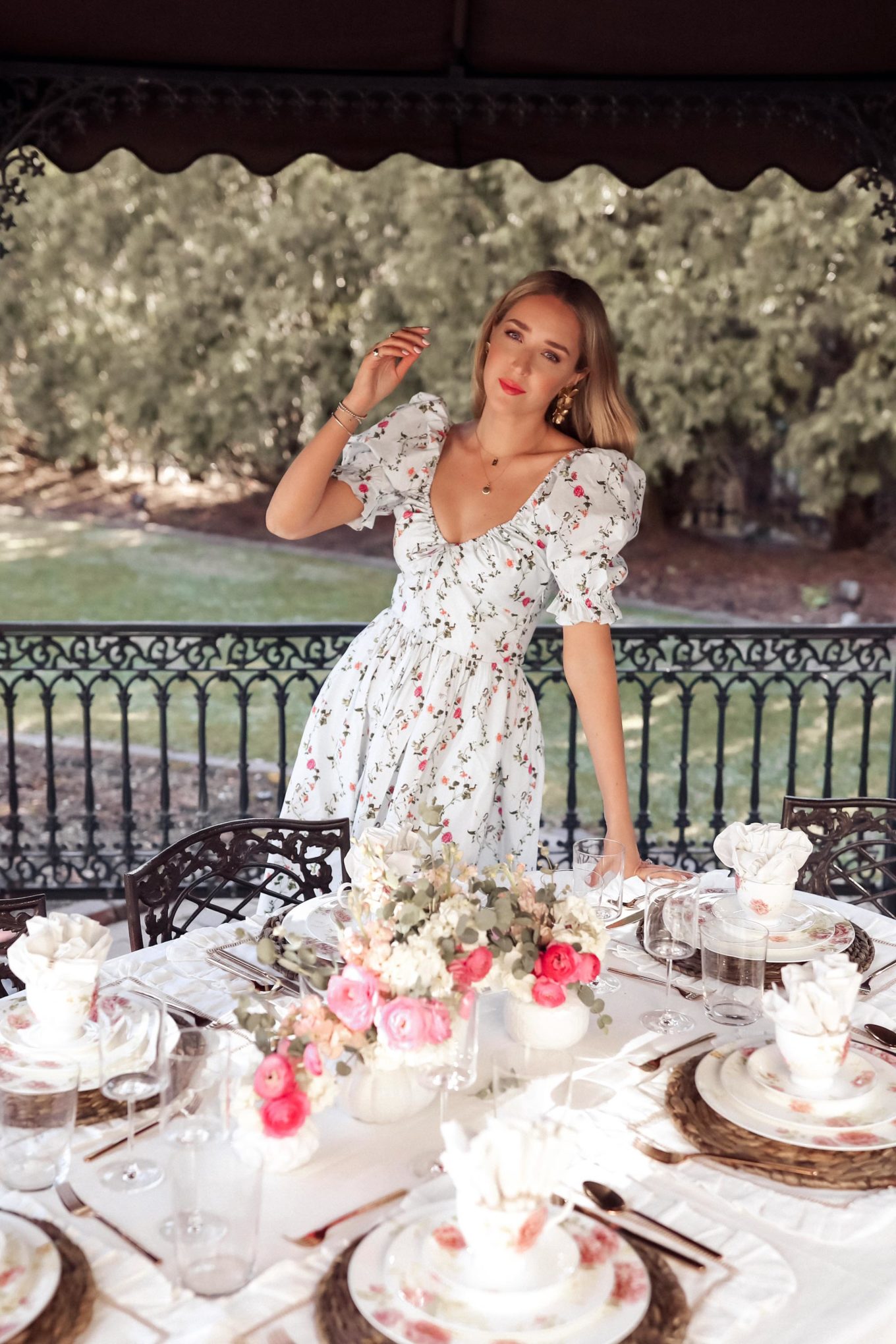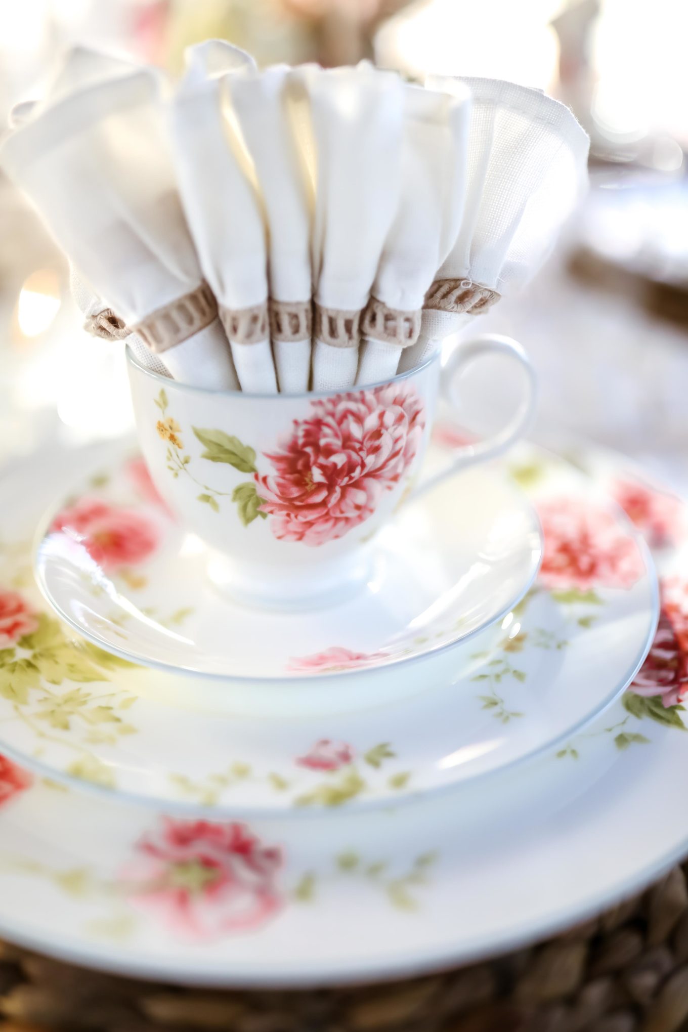 I wanted this Mother’s Day table to be a welcoming, sweetly-styled table with feminine touches and a delicate color palette. For a crisp, classic base layer I used this white linen tablecloth which set a bright stage for the rest of the table setting. It’s also a great staple to have on hand and have at-the-ready for any last-minute entertaining. To add some dimension and a little bit of seasonal texture, I added this set of natural fiber woven placemats on top of sweetly ruffled hemstitch placemats which demanded they be paired with the matching ruffle hemstich napkins, obviously. This Noritake china features the most charming peony pattern, ideal for Mother’s Day and eminently reusable for a variety of gatherings including afternoon teas, weekend brunches, you name it. I mean, just look at the detail on these plates! What’s that you ask? Is there a delicate blue rim on each pieces? Of course there is. Also, if you’ve been searching high and low for the perfect set of dishwasher-safe brushed copper flatware, you’re welcome my friends. Very welcome indeed.