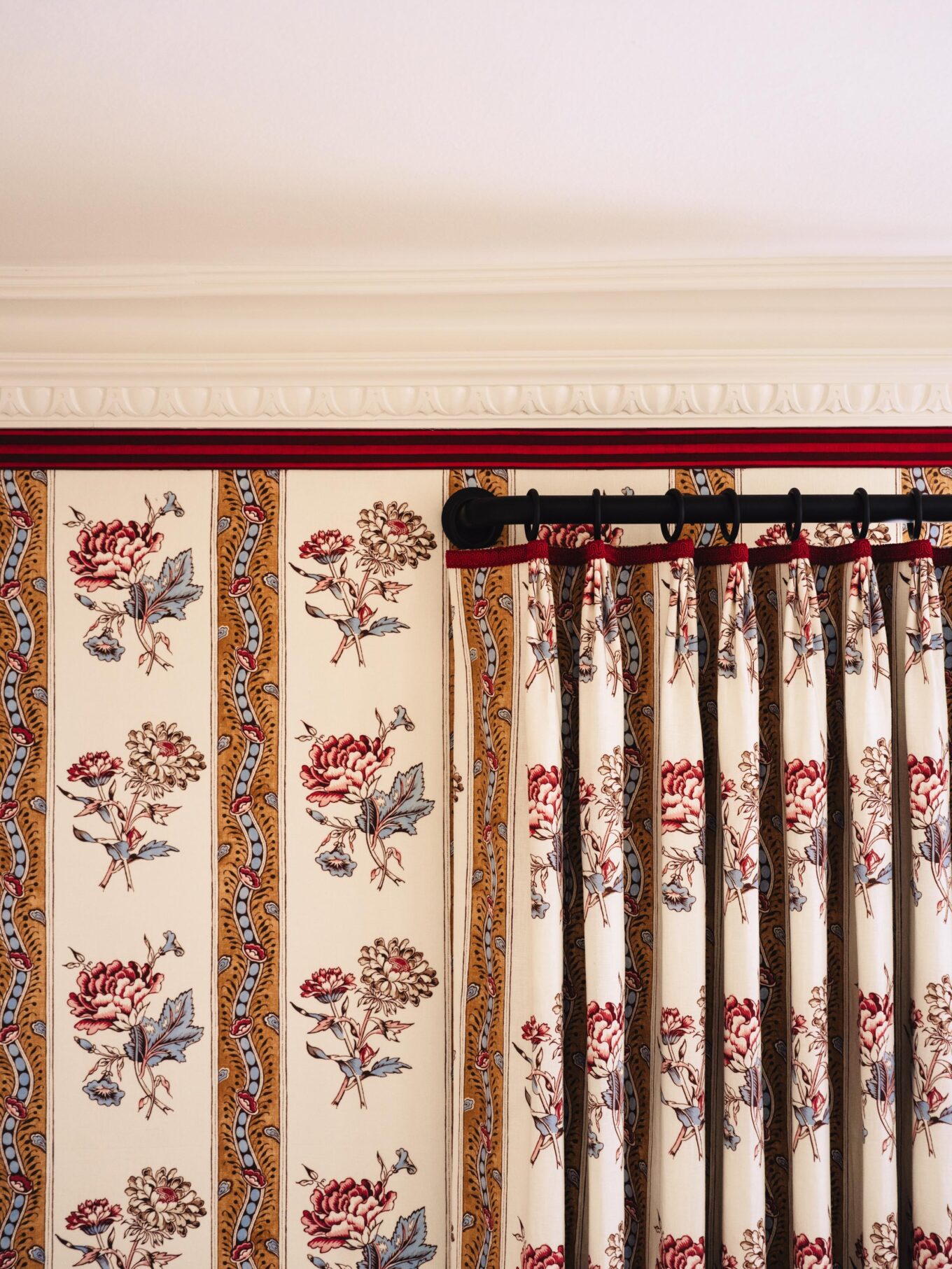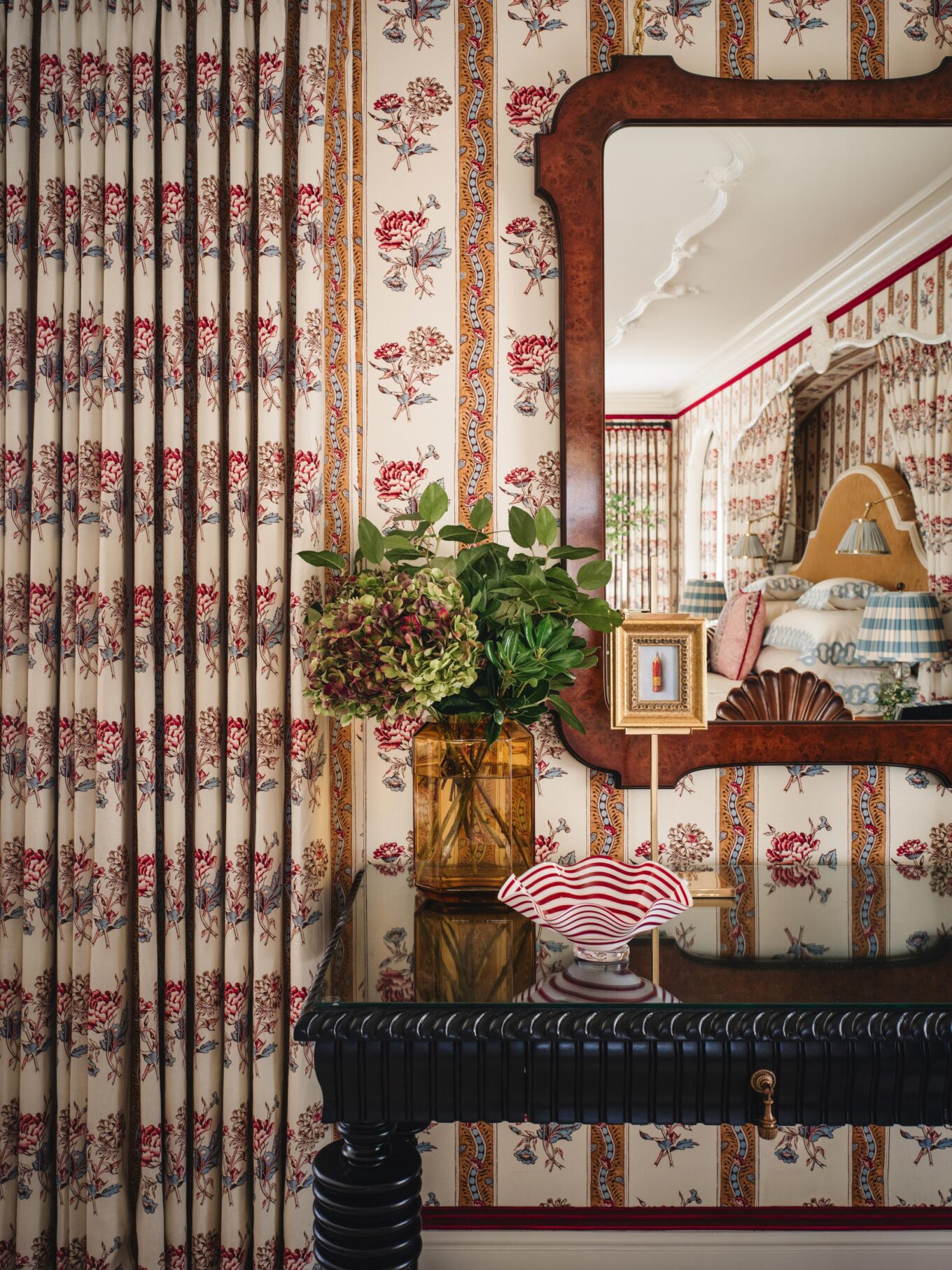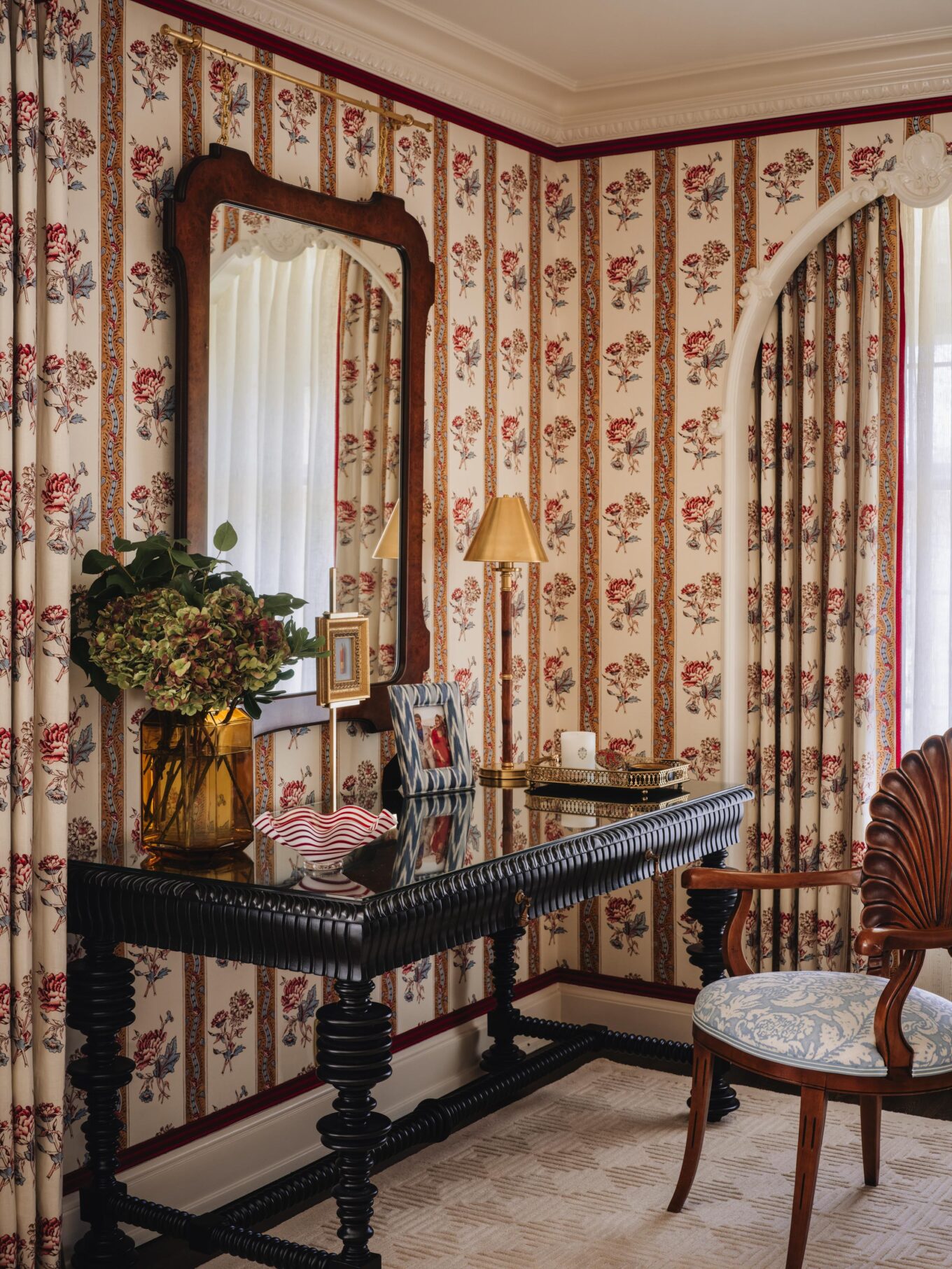 WALLPAPER: Schumacher Ariana Floral Stripe (this fabric was acrylic-backed for wall application)