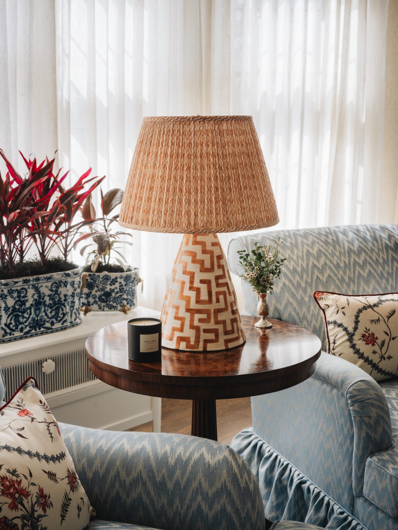 TABLE LAMPS: Antiques with Lampshades in Schumacher Camden Check