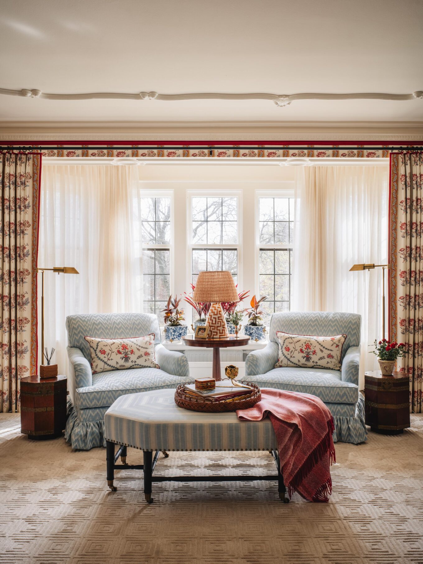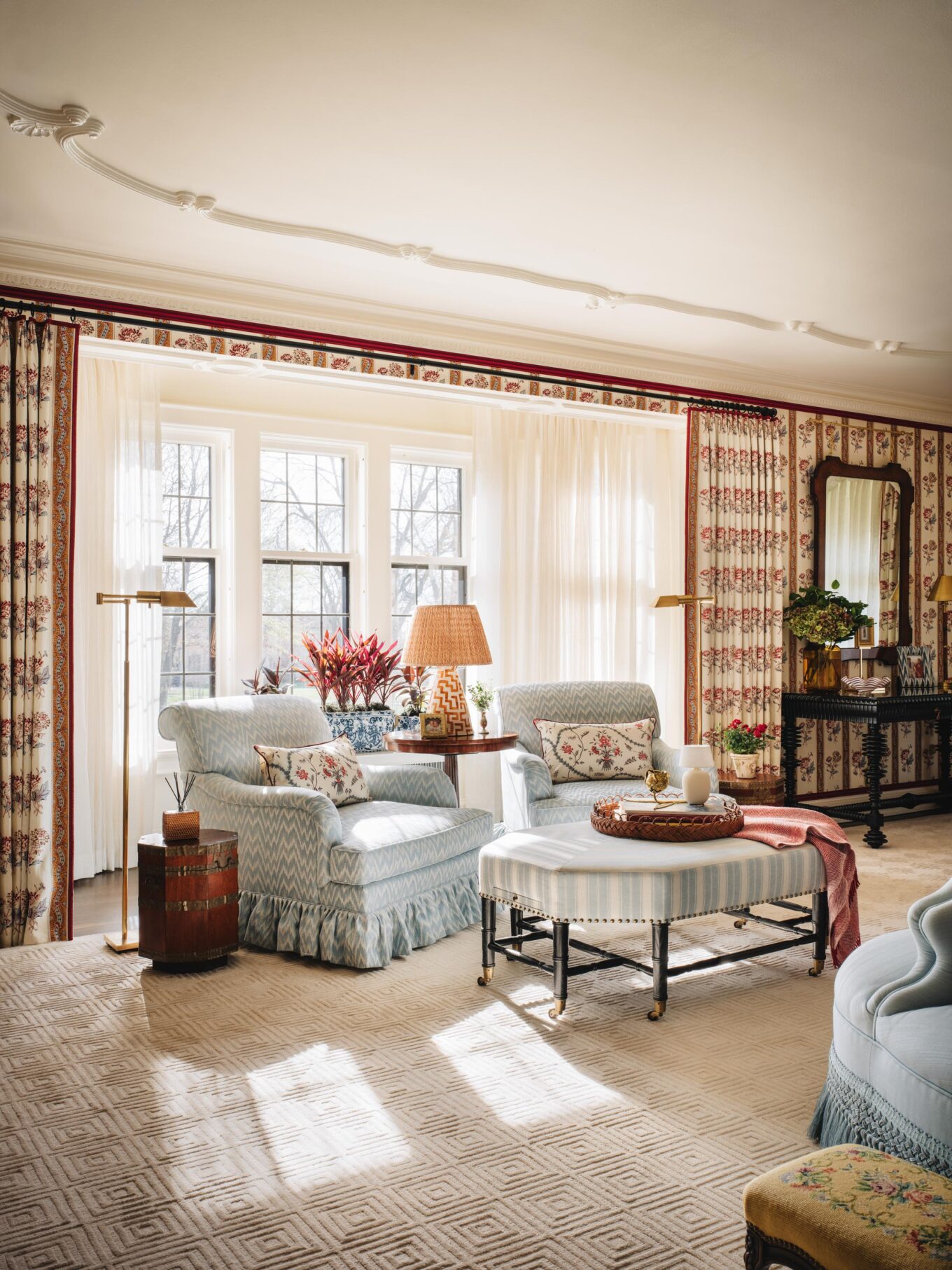 DRAPERIES: Schumacher Ariana Floral Stripe