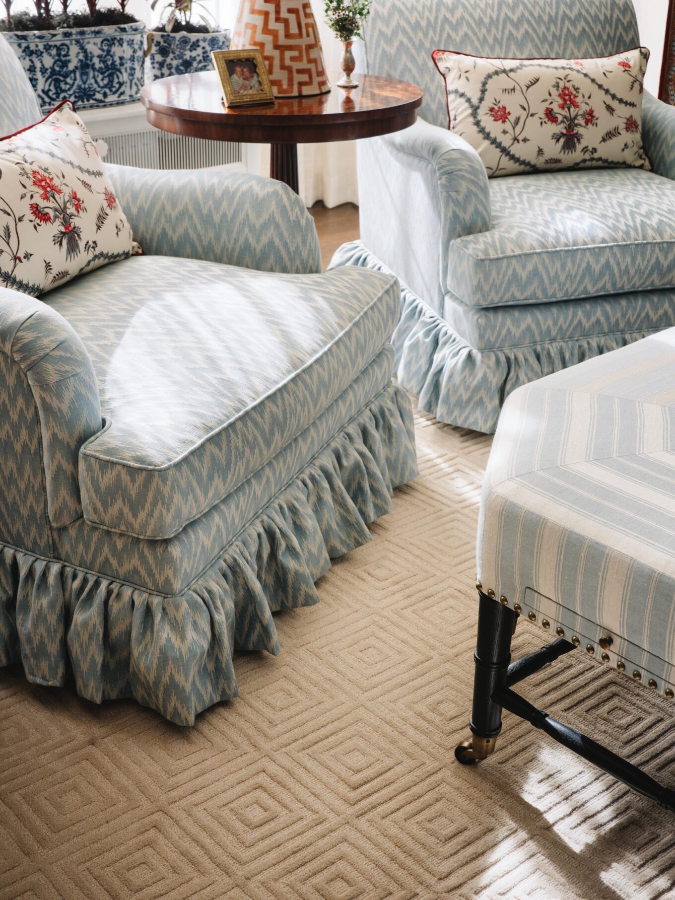 PILLOWS: Custom, Pierre Frey Seine Port and Schumacher Jokhang Tiger