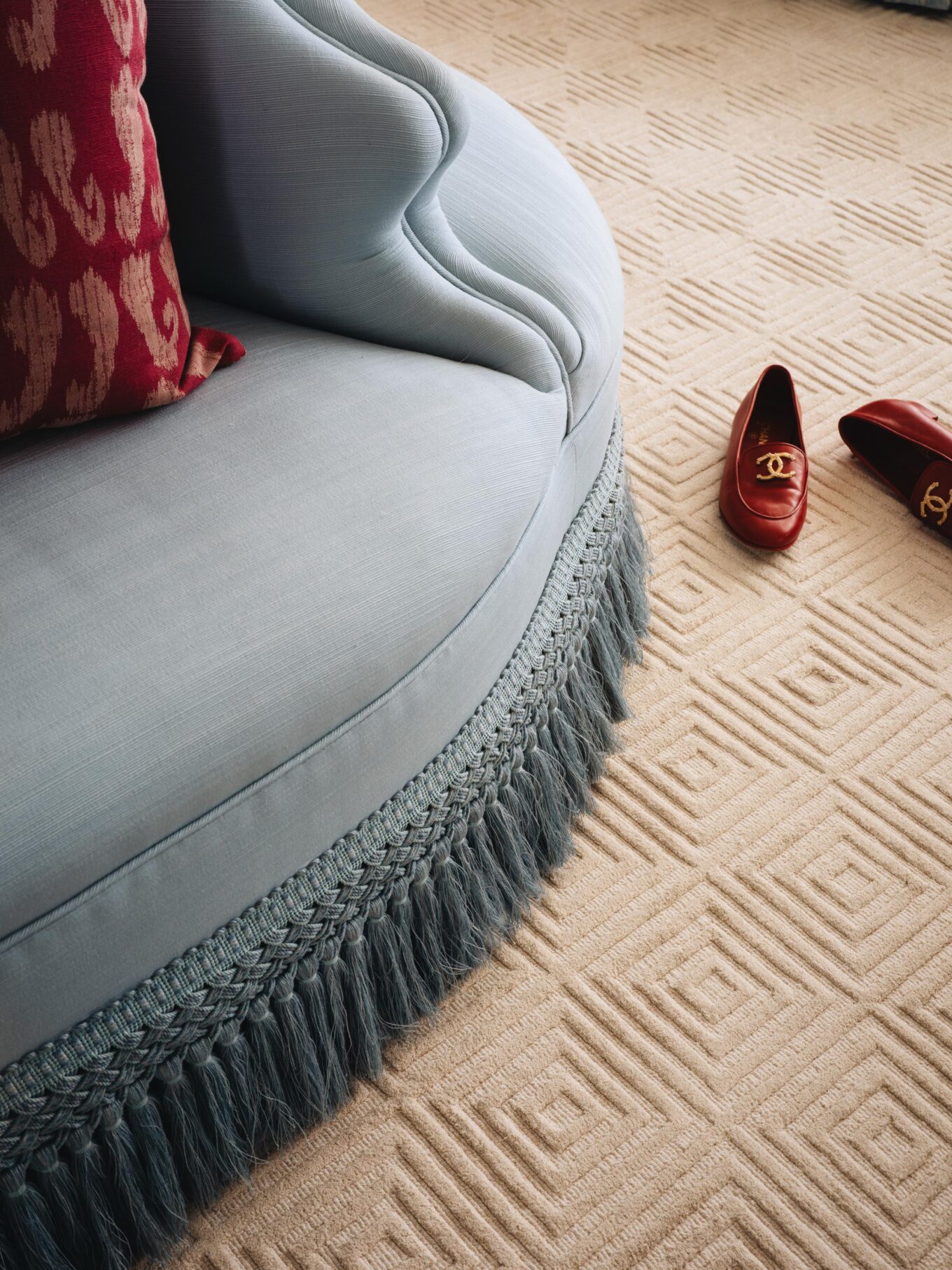 PILLOWS: Custom in Soane’s Paisley Parrot in Jewel and Schumacher’s Wave Velvet in Chocolate