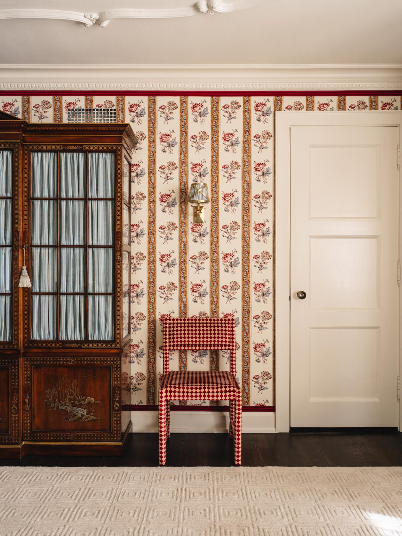 BREAKFRONT WALL CHAIRS: Custom created by The Upholstery Studio