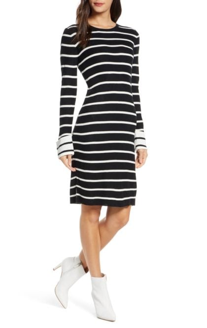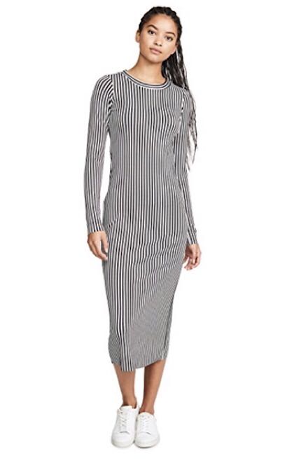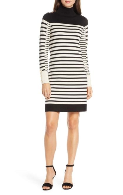 This is AG’s Chelden turtleneck dress made of mid-weight jersey in a classic black and white stripe pattern. In case you haven’t noticed (snap out of that turkey coma, it’s game day!) it’s included in the enormous Shopbop sale!