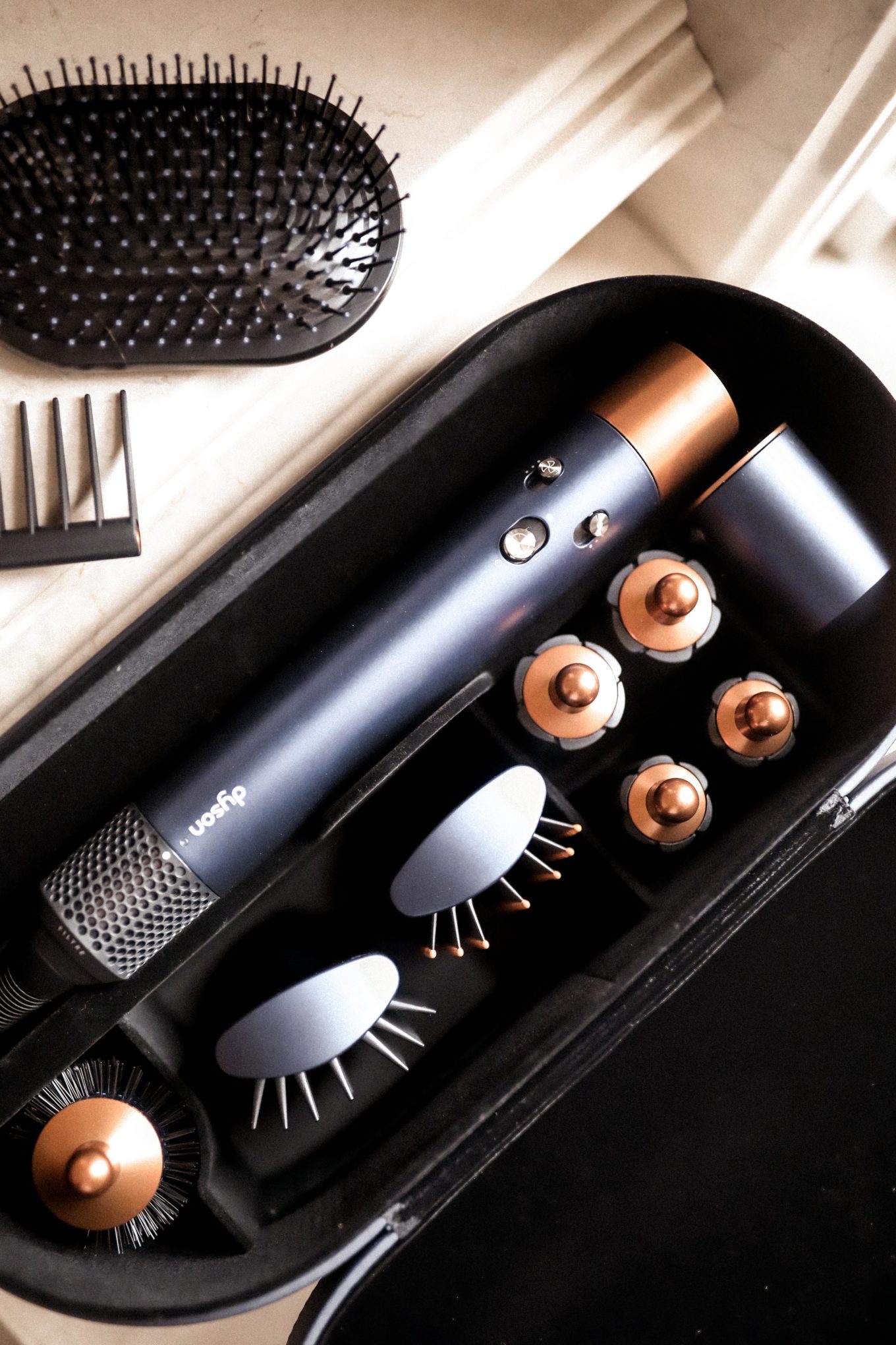 While the Dyson Airwrap you see in these photos is a new special navy edition for this holiday season, I’ve had the grey and pink version of the exact same tool for over three years and can confidently say it is an exceptionally effective feat of modern engineering and an excellent investment. Why? Well, in short, it’s faster than any other tools on the market and better for your hair.